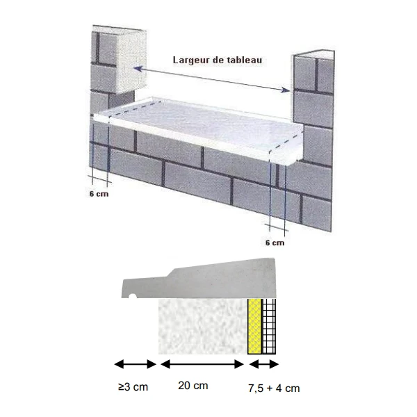 - Largeur adaptée pour une construction sur blocs de 20 cm avec une isolation de 7,5 cm ou une contre cloison intérieure de briques plâtrières.