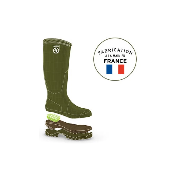 - Semelle intérieur en mousse absorbante sur base caoutchouc, doublée Softex (Polyester permettant un séchage rapide, une résistance à l’abrasion et un meilleur confort).