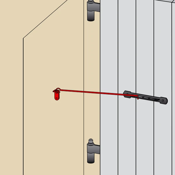 Placez ce crochet Torbel sur le mur de votre volet battant pour pouvoir le maintenir en position fermé.