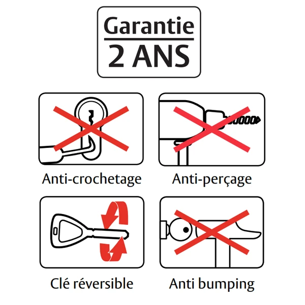- Livré avec 5 clés réversibles et leur carte de propriété.