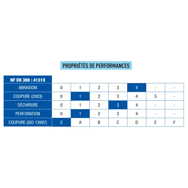 - CE selon les normes NF EN 420 et NF EN 388