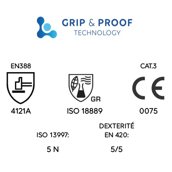 | Matière | 3/4 Enduction spéciale Grip & Proof à base de nitrile |