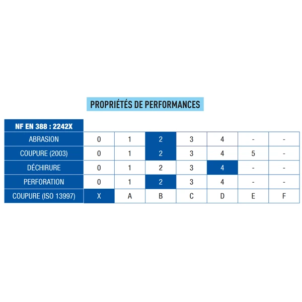 - CE selon les normes NF EN 420, NF EN 388 et NF EN 511