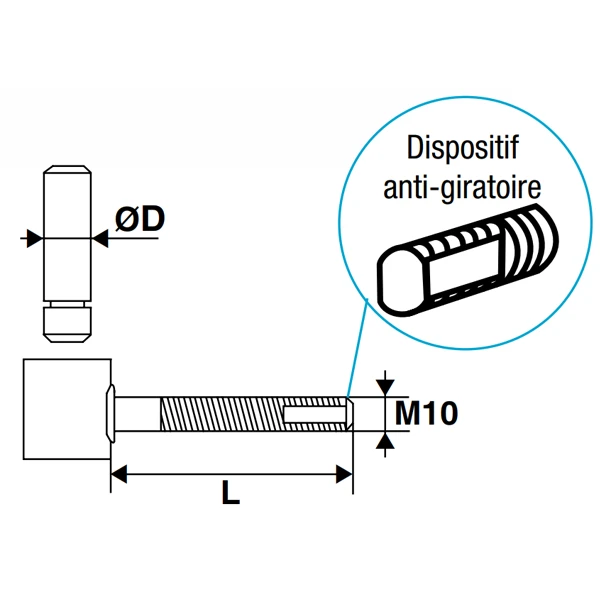 | Diamètre de la tige | M10 |