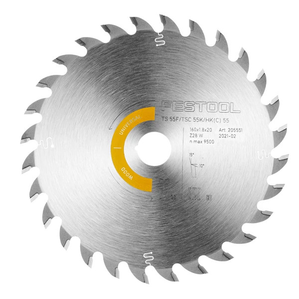 | Conditionnement | 1 lame de scie circulaire Universal Wood Festool HW 160 x 1,8 x 20 W28 |