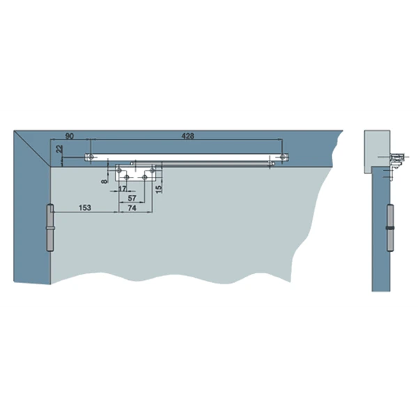 - Limiteur d’ouverture avec glissière en aluminium extrudé anodisé.