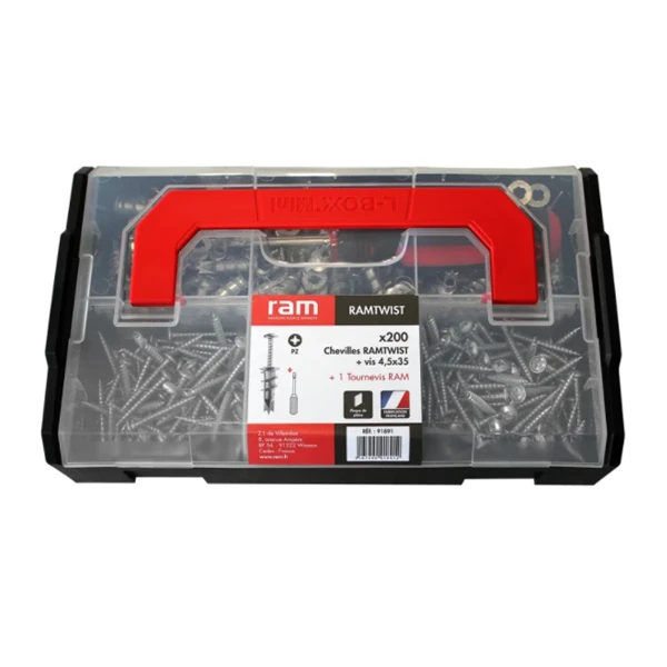 | Conditionnement | Malette de 200 chevilles autoforeuses, 1 tournevis aimanté Pozi et 200 vis |