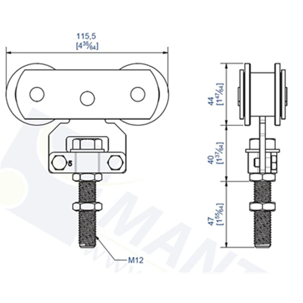 - Avec 2 galets en acier montés sur cage à rouleaux