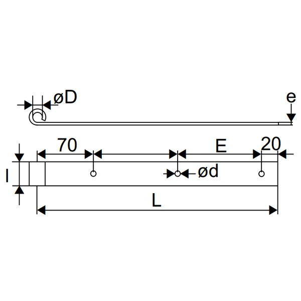 | Distance entre le dernier trou et le bout de la penture | 20 mm |