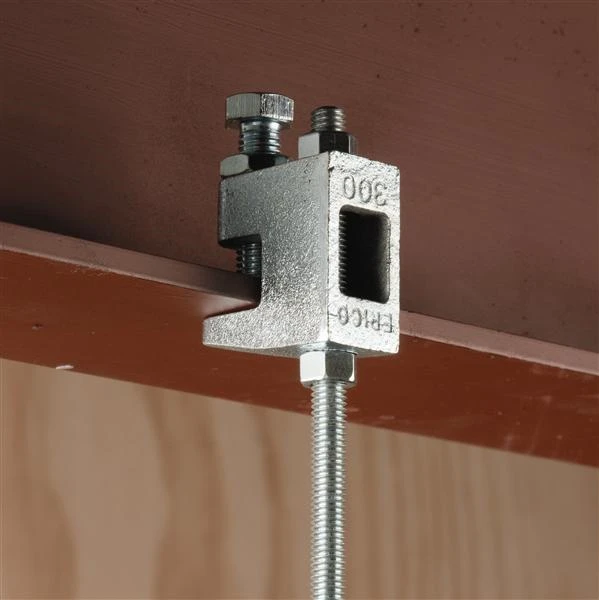 - Pince à poutrelle pour la fixation de tuyauteries, gaines de ventilation et tuyauteries sprinkler sur poutres acier.