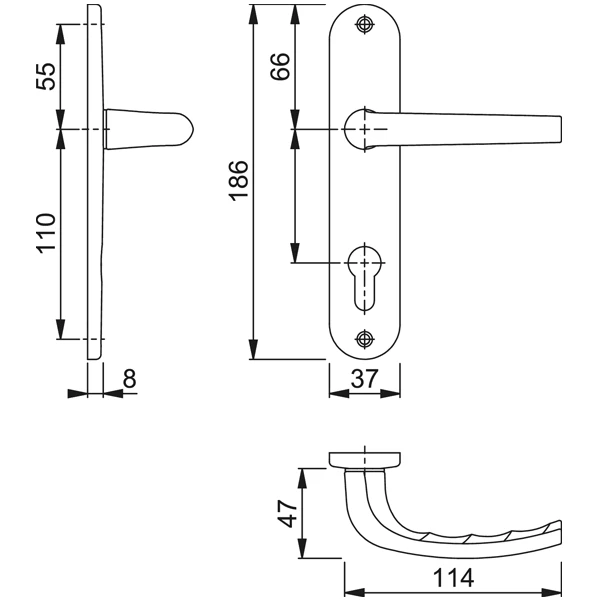 Fixation : visible, traversante, vis filetées M4 avec douilles filetées