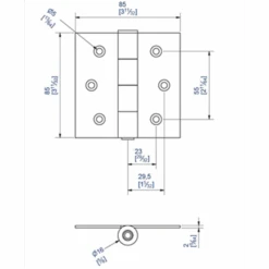 Charnière à Visser Sur Plat 85×85 Mm Axe Diamètre 12 Mm Mantion 1512P