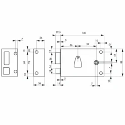 Serrure Encastrer Pêne Demi-tour Réversible 40 Mm 70 Mm Acier Noir