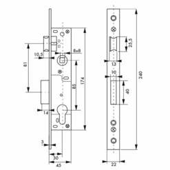 Boîtier Serrure à Cylindre Européen Axe 21 Largeur 35 Mm Entraxe 70 Mm