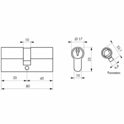 Cylindre Double à Panneton Vachette PM2 Laiton Nickelé 30 X 30 Mm