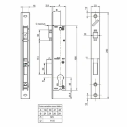Serrure à Encastrer 1 Point Pêne Dormant Seul – Metalux 14 – Coffre 21 X 95 Mm – Axe 10.5 Mm