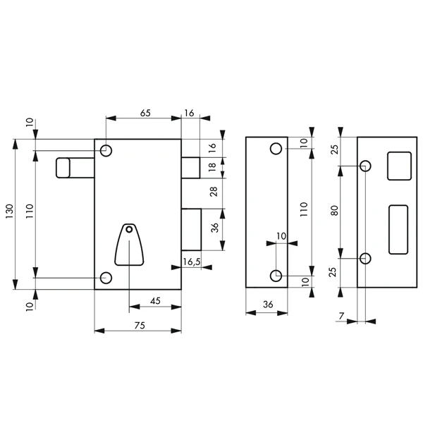 - Livrée avec la gâche et 2 clés nickelées (20 variures).