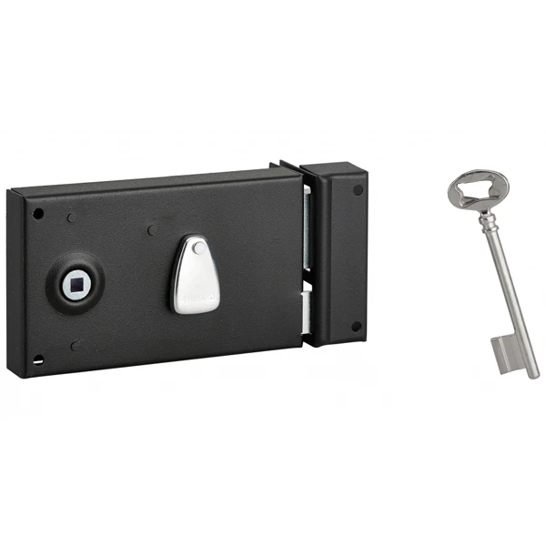 - Pêne, demi-tour, entrée de clé, fouillot et canon en acier.