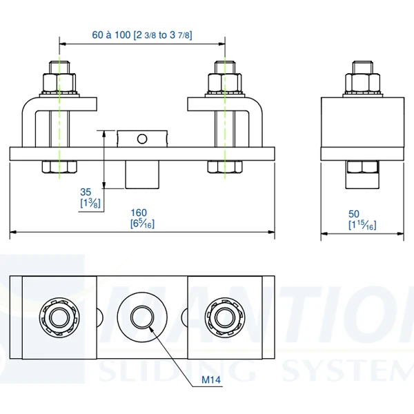 - Permet de fixer une tige filetée longue M14, présente sur le support 6256 L ou le manchon 6256 ML.