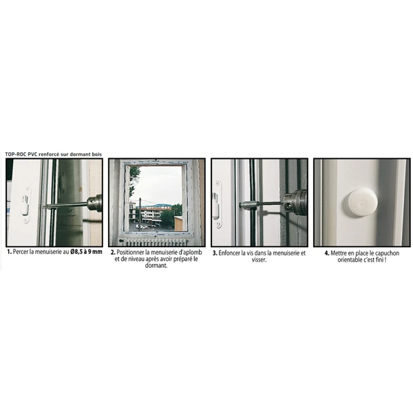 | Fixation sur dormant bois | Vissage direct dans dormant bois | Longueur 70 et 80 mm |